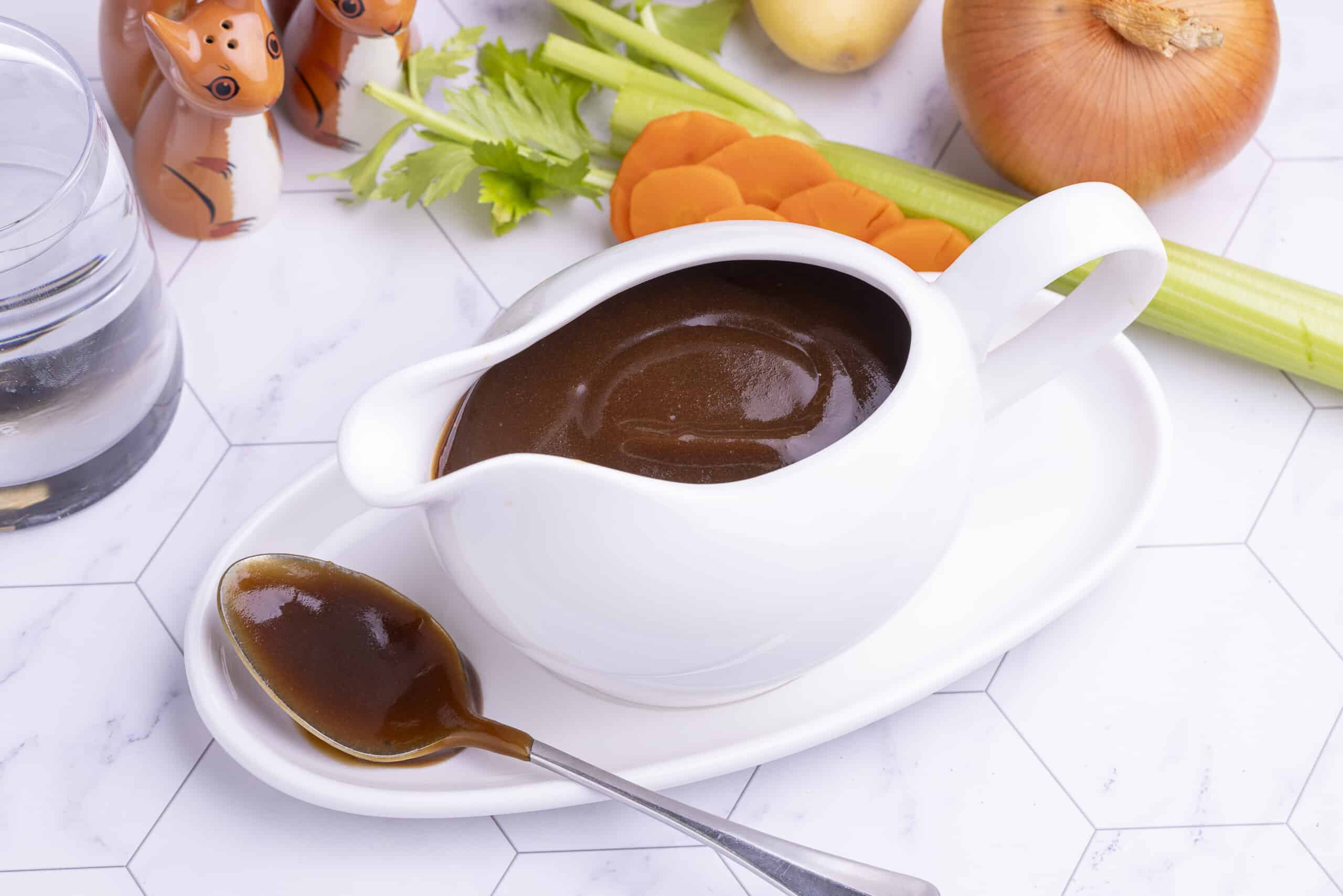 Love extra gravy? Well now you can enjoy our house gravy anytime you feel it. Great with our Just Veggies, Lamb and Rosemary Puff or even with our Steak Bacon and Cheese Pie. Or you may want to have it with chips from the local take away. Either way, this is an easy and tasty solution in your freezer.