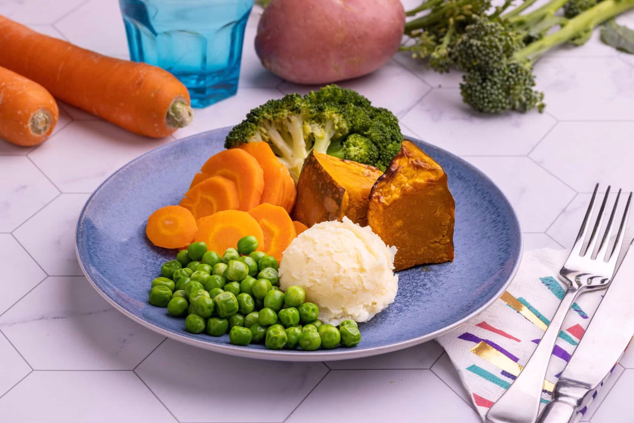Here by popular demand! An assorted range of our vegetables including mashed potato, roasted pumpkin, carrots, two greens and sweet potato wedges. Just plain, simple and nutritious.
